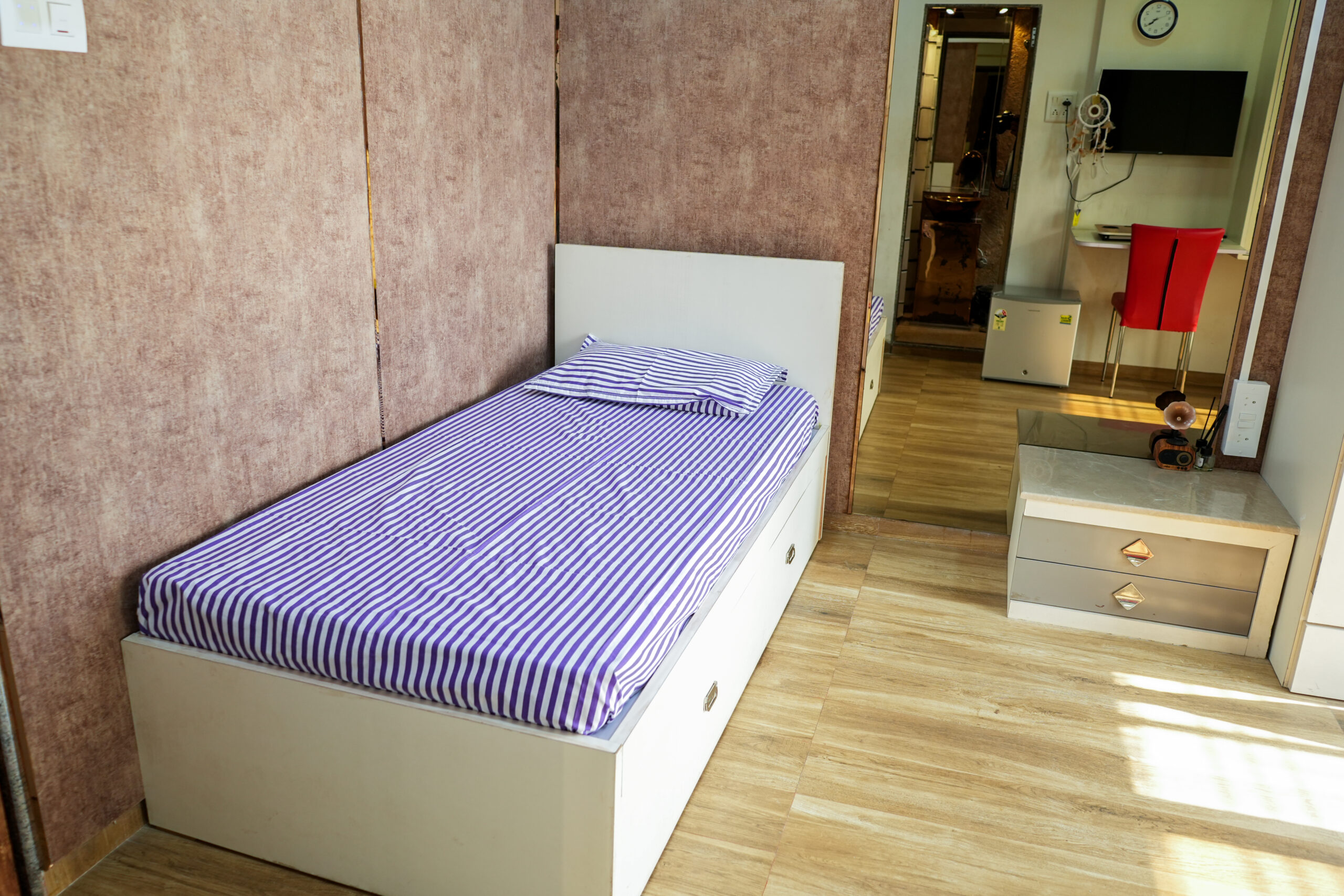 Welcome to our Rising Star Single Sharing Girls Hostel Room! Our Rising Star Single Sharing Girls Hostel Room is designed to provide the utmost comfort, privacy, and convenience for male students or working professionals. We aim to create a comfortable and conducive environment where you can focus on your studies or work while enjoying a pleasant living experience. Book our Single Sharing Girls Hostel Room today and make it your home away from home!